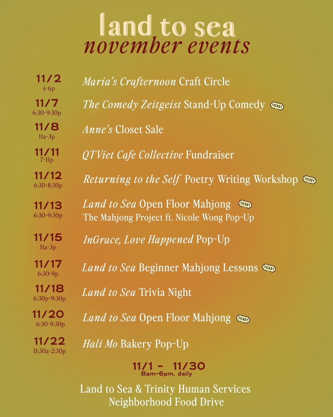 It’s getting chilly out there, but we promise the shop will make your heart feel warm! This month we have more mahjong, trivia night, fundraisers and pop-ups. See you at the shop!