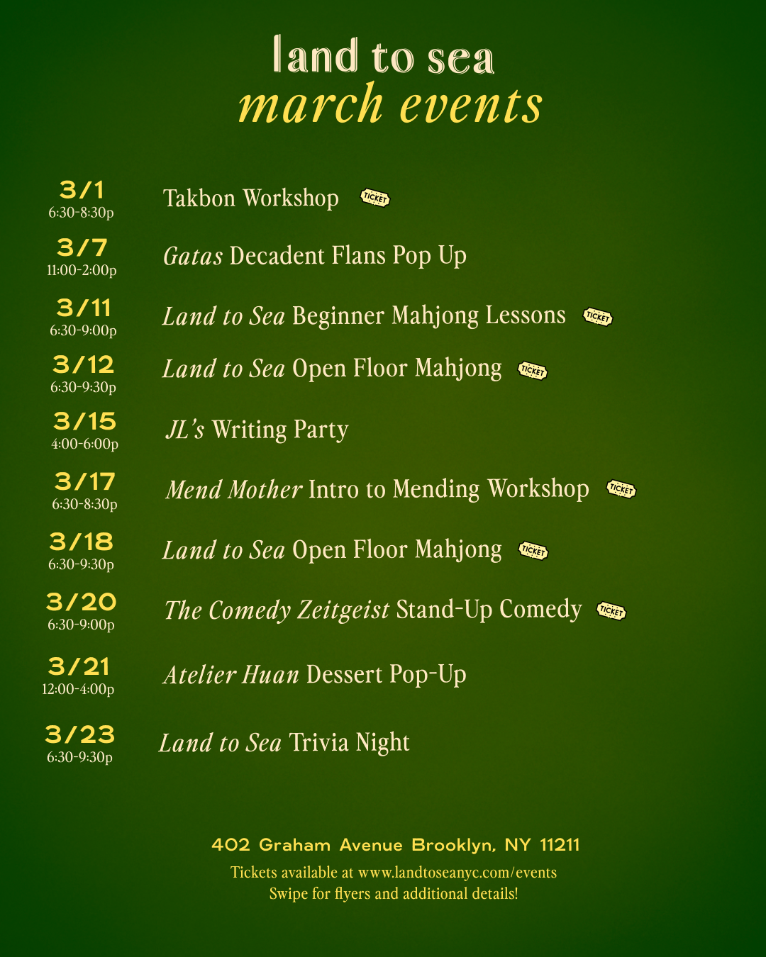Join us for more mahjong, pop-ups, comedy, trivia, and workshops this month.