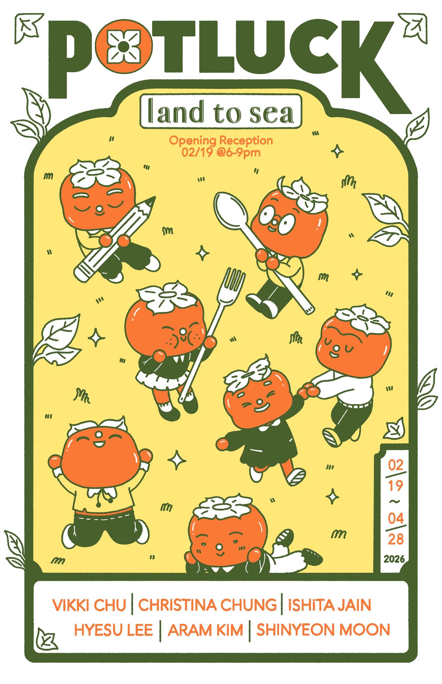 Pot Luck's Opening Reception celebration is free and open to the public. Please join us February 19th from 6-9pm at Land to Sea. It will remain on view until April 28th.