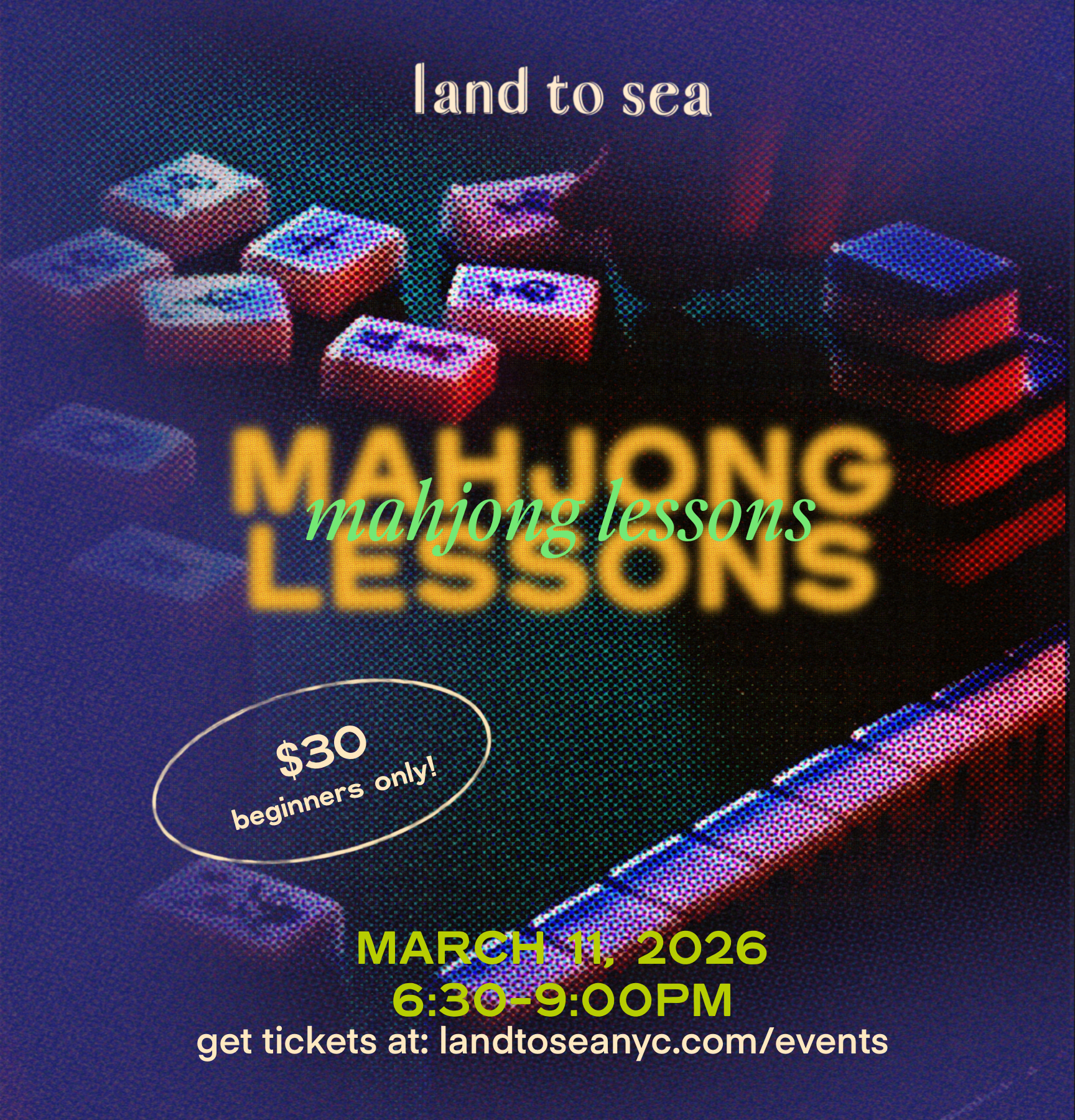 Calling all beginners and newcomers! Join us for an evening of beginner mahjong lessons. If you have been interested in learning how to play Mahjong - are new to the game or just getting started - this class will equip you with what you need to know! This class will include instruction on basic rules and beginner strategies and offer guided game play. This class is intended for beginners only.